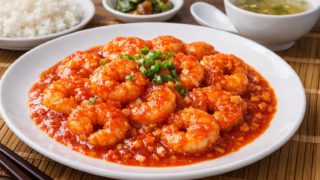プリッとした海老を、豆板醤とケチャップベースの甘辛いチリソースで絡めた定番中華。家庭でも作りやすい配合で、短時間で仕上がります。