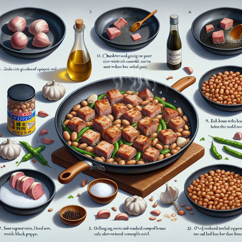 豚肉と豆を使った、簡単でヘルシーなランチレシピです。基本的な調味料で味わい深く仕上げます。