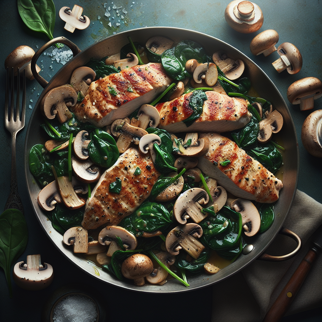 - 食材: 鶏肉, マッシュルーム, ほうれん草