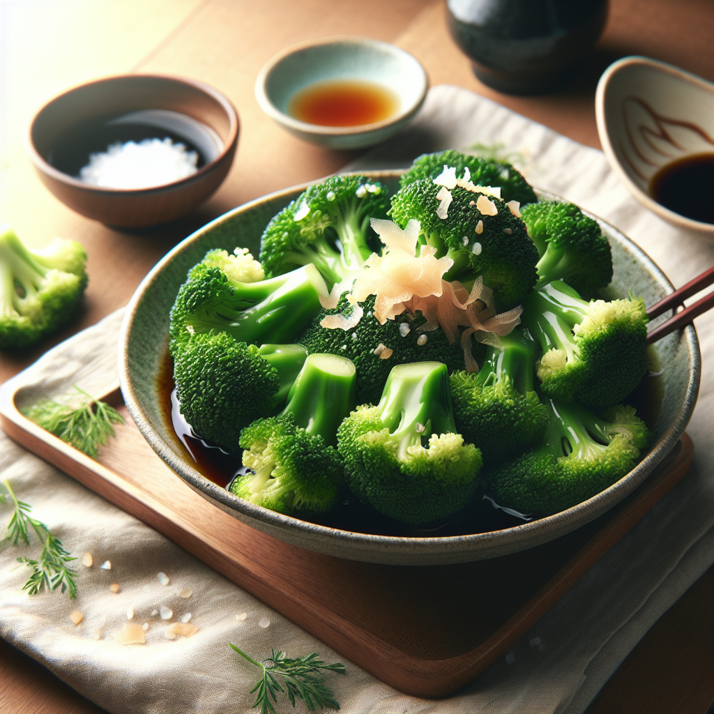 シンプルながらもブロッコリーの風味と栄養を楽しめる和食のランチにぴったりです。削り節とだしの旨味がブロッコリーの甘みを引き立て、食欲をそそります。