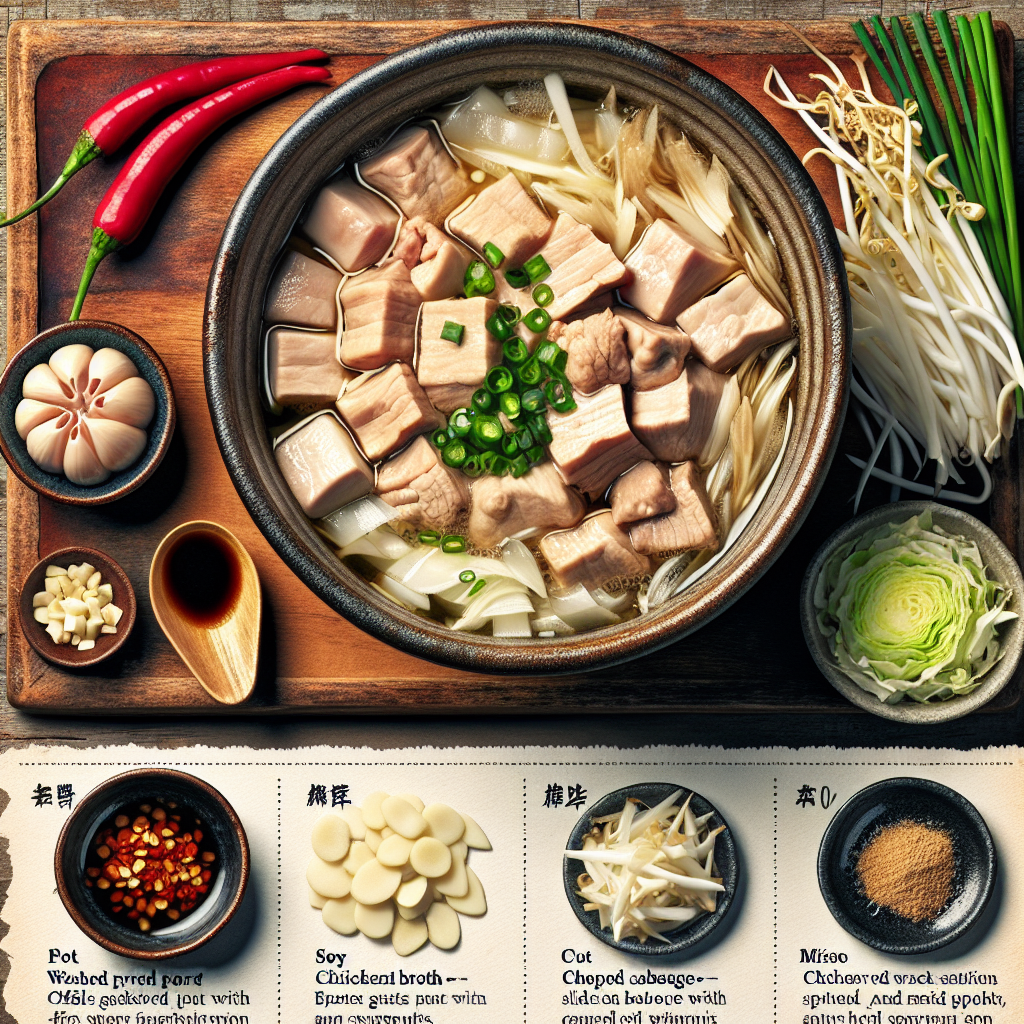 シンプルながらも具材の旨みを堪能できる、家庭でも簡単に作れるもつ鍋のレシピです。豚モツとキャベツ、もやしを主な具材に、にんにくとニラを加えて風味豊かに仕上げます。