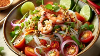 タイの人気料理パッタイのフレーバーを再現した、フォーとえびを使ったパスタレシピです。ニラ、もやし、卵を合わせることで、本格的な味わいと食感を楽しめます。