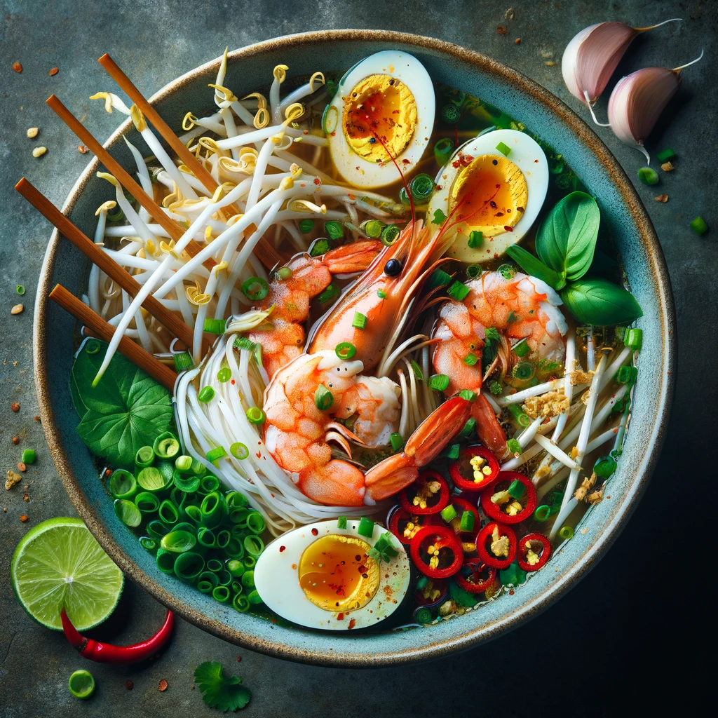 • 食材: 卵, フォー, えび, もやし, にら, にんにく