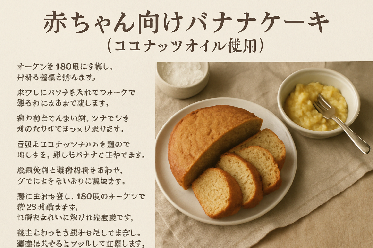 - 備考: 赤ちゃん向けのバナナケーキを作りたいです。